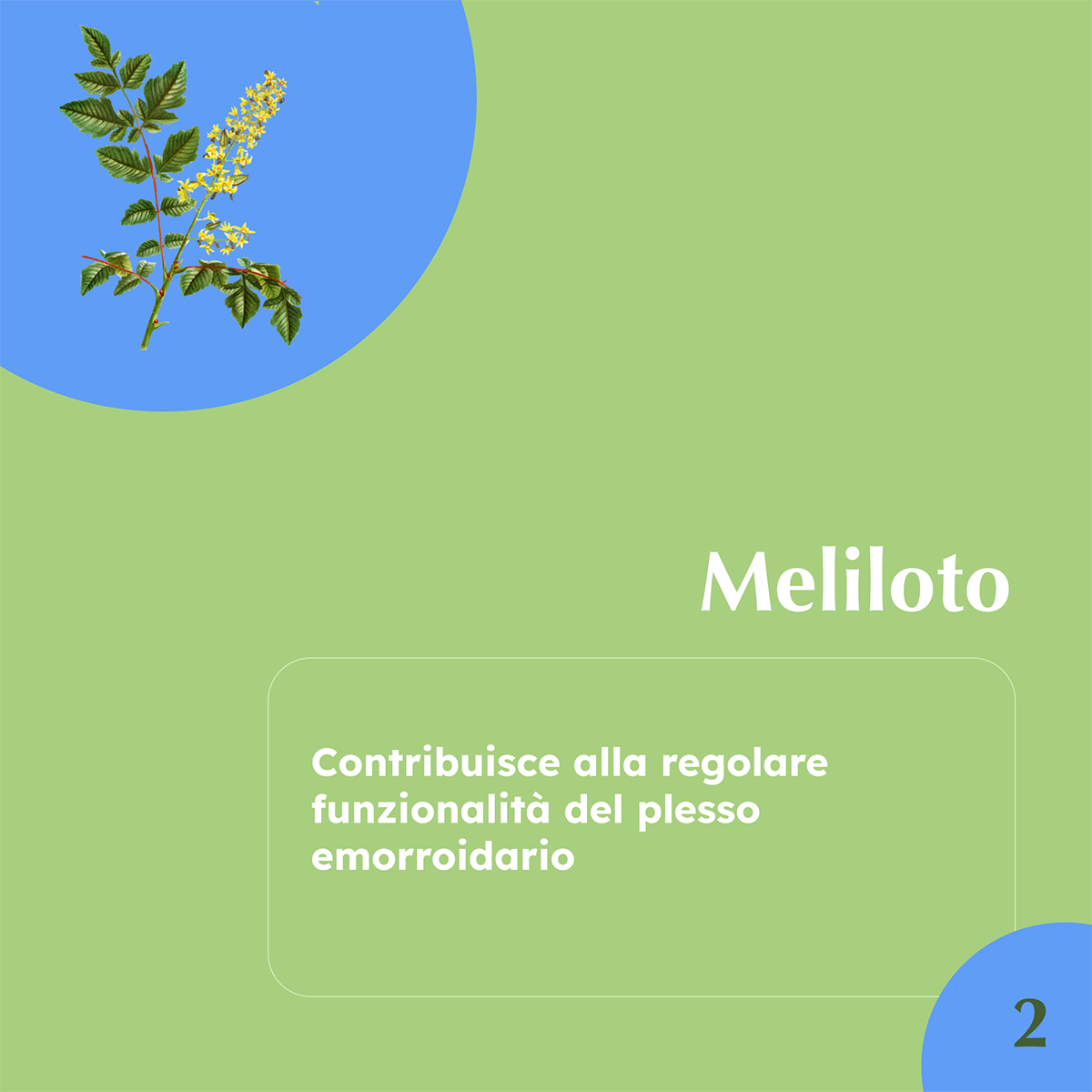 L’estratto di Meliloto contribuisce alla regolare funzionalità del microcircolo e della circolazione venosa (funzionalità del plesso emorroidario). Inoltre, favorisce il drenaggio dei liquidi corporei.